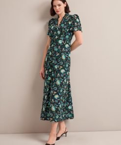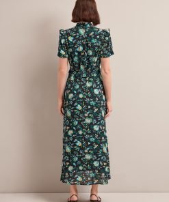 The Liliana dress flatters so many figures thanks to its V-neckline, high hip-skimming waist and softly shoulder-defining frill detailing. Designed in a beautifully drapey cotton viscose georgette that’s fully lined, it’s practical as well as pretty – the rouleau buttons are stitched down through the bust and waist to avoid gaping but can be opened at the bottom to show off more leg.