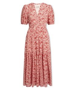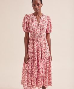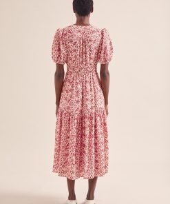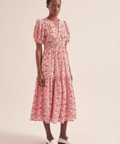 Olive Cotton Blend Midi Dress – Red Mono Floral Print